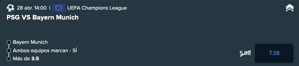 Sábado 28 de Abril de 2026. Partido: Paris vs Bayern München.